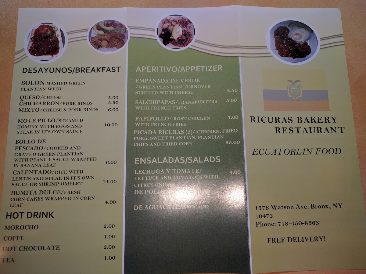 Ricuras Ecuadorian Bakery Menu